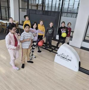 Na lyžařském trenažéru měli možnost seznámit se se základními pohyby a principy lyžování a vyzkoušet si netradiční sportovní aktivitu. Následně program pokračoval bowlingem, při kterém si žáci procvičili koordinaci pohybu a užili si společnou hru.