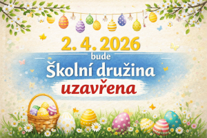 rádi bychom Vás informovali, že dne 2. 4. 2026 (ve čtvrtek) bude školní družina uzavřena.