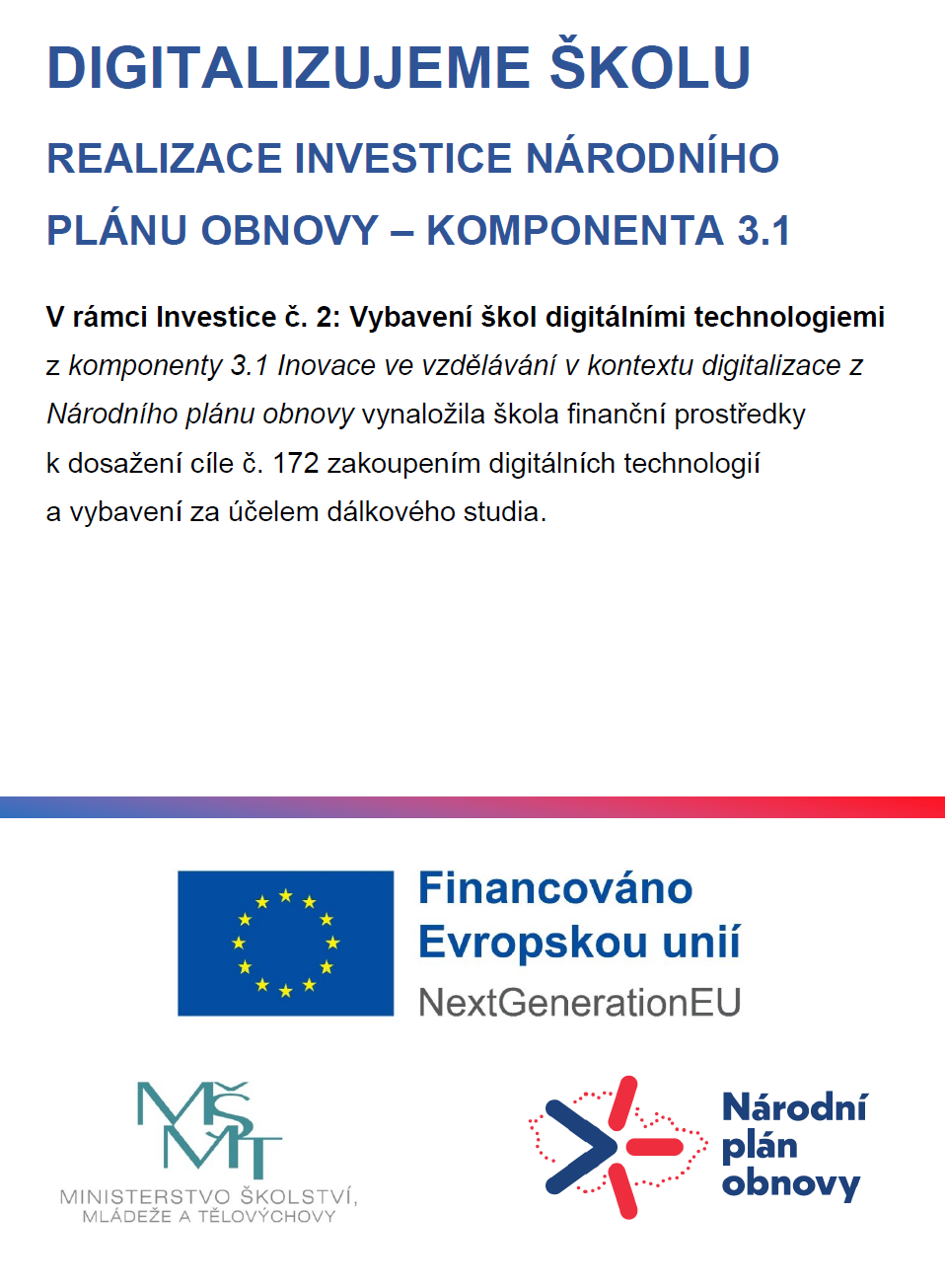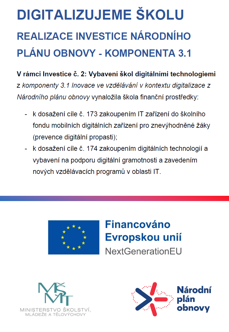 Naše škola je příjemcem podpory EU.