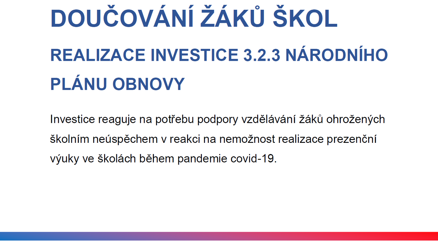 Název programu: Doučování žáků škol – Realizace investice 3.2.3.